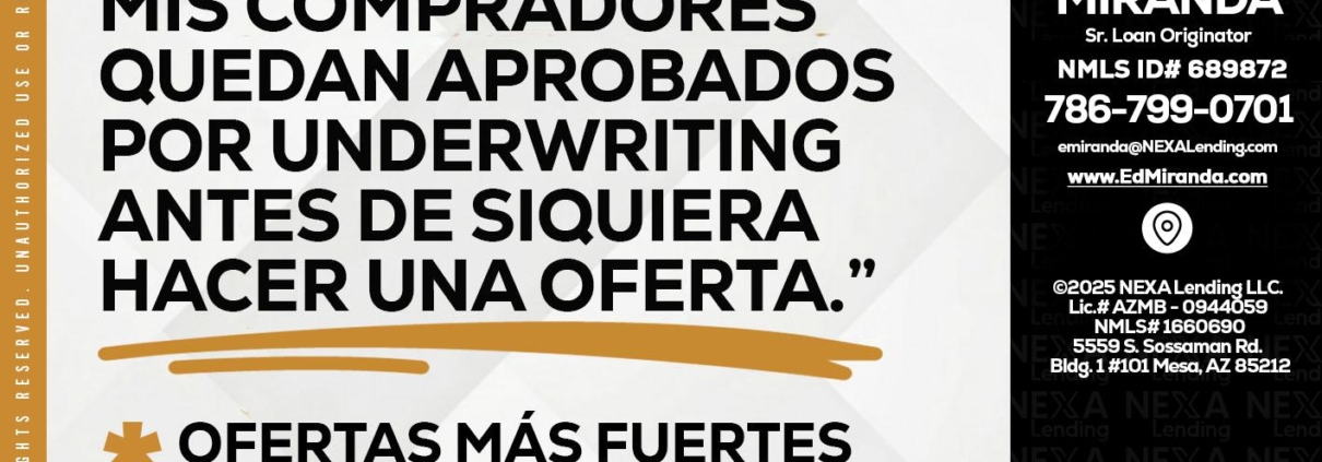 Hi, my name is Ed Miranda. I’m a Loan Officer with NEXA Lending LLC., offering personalized mortgage solutions, fast customized quotes, great rates and service with integrity.