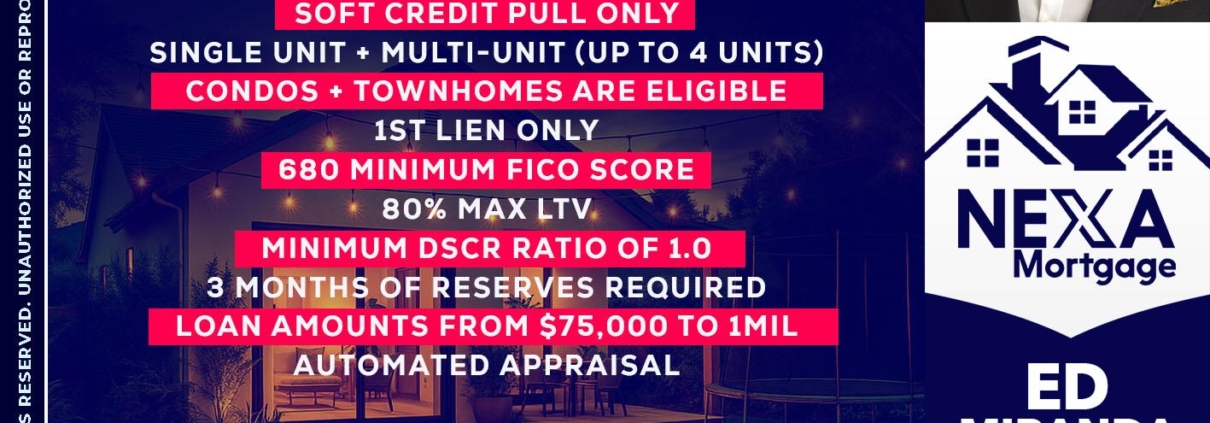 Hi, my name is Ed Miranda. I’m a Loan Officer with NEXA Mortgage LLC., offering personalized mortgage solutions, fast customized quotes, great rates and service with integrity.