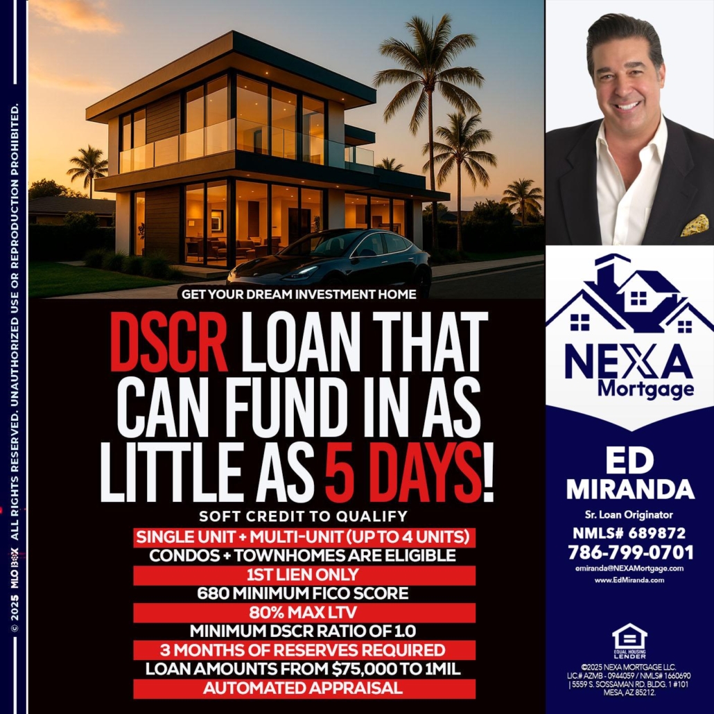 Hi, my name is Ed Miranda. I’m a Loan Officer with NEXA Mortgage LLC., offering personalized mortgage solutions, fast customized quotes, great rates and service with integrity.