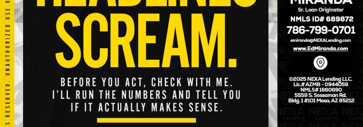 Hi, my name is Ed Miranda. I’m a Loan Officer with NEXA Lending LLC., offering personalized mortgage solutions, fast customized quotes, great rates and service with integrity.