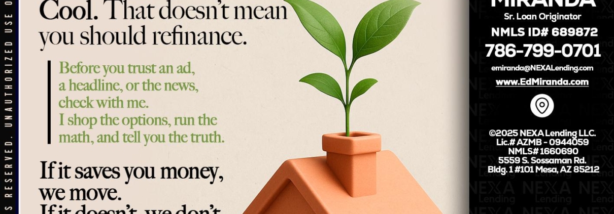 Hi, my name is Ed Miranda. I’m a Loan Officer with NEXA Lending LLC., offering personalized mortgage solutions, fast customized quotes, great rates and service with integrity.