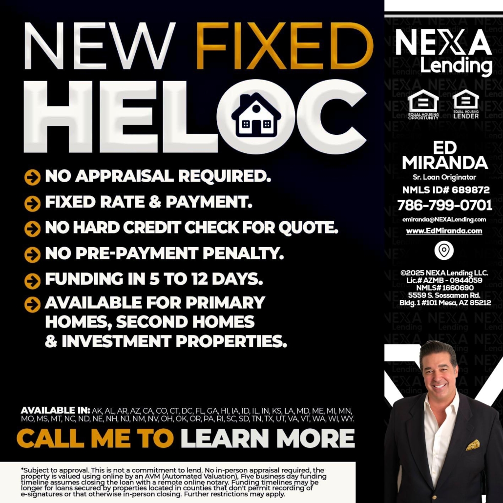 Hi, my name is Ed Miranda. I’m a Loan Officer with NEXA Lending LLC., offering personalized mortgage solutions, fast customized quotes, great rates and service with integrity.