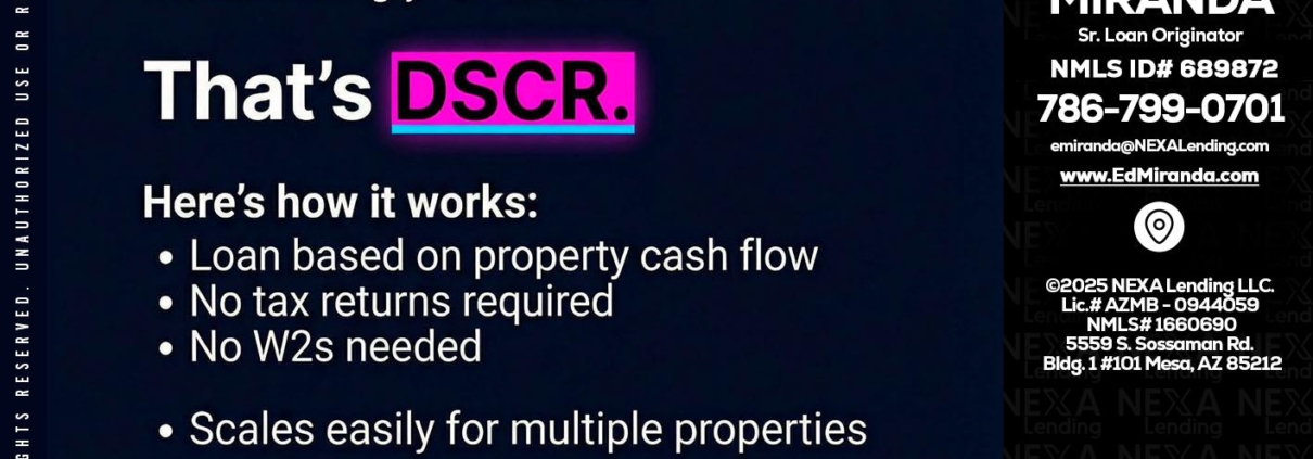 Hi, my name is Ed Miranda. I’m a Loan Officer with NEXA Lending LLC., offering personalized mortgage solutions, fast customized quotes, great rates and service with integrity.