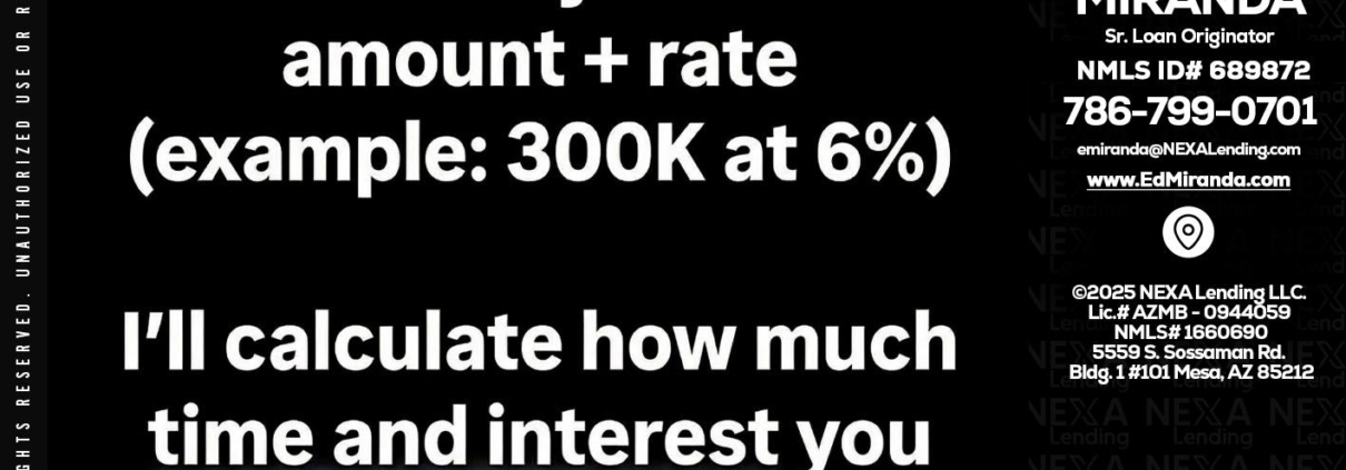 Hi, my name is Ed Miranda. I’m a Loan Officer with NEXA Lending LLC., offering personalized mortgage solutions, fast customized quotes, great rates and service with integrity.