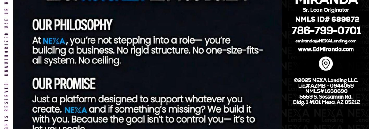 NEXA INSIGHTS - Ed Miranda -Senior Loan OriginatorHi, my name is Ed Miranda. I’m a Loan Officer with NEXA Lending LLC., offering personalized mortgage solutions, fast customized quotes, great rates and service with integrity.
