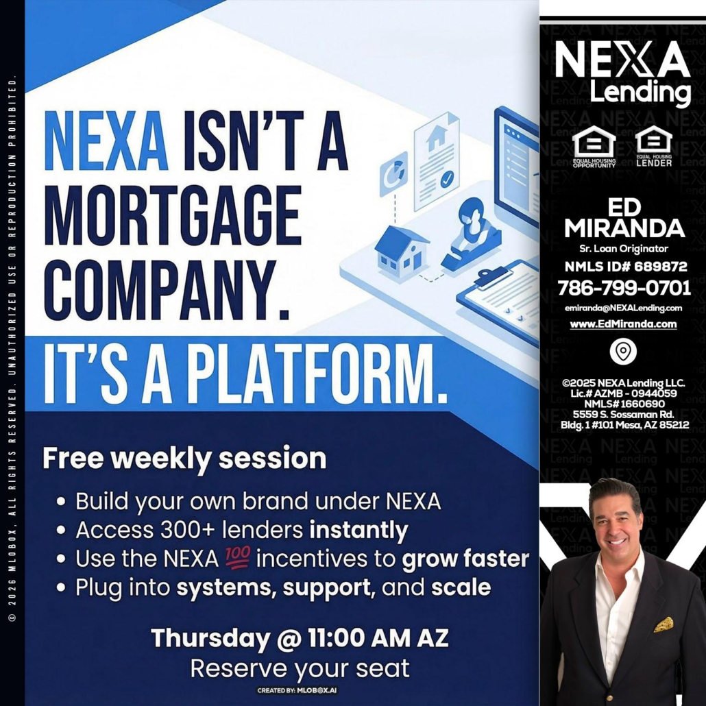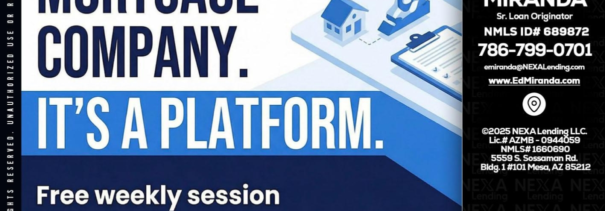 Hi, my name is Ed Miranda. I’m a Loan Officer with NEXA Lending LLC., offering personalized mortgage solutions, fast customized quotes, great rates and service with integrity.