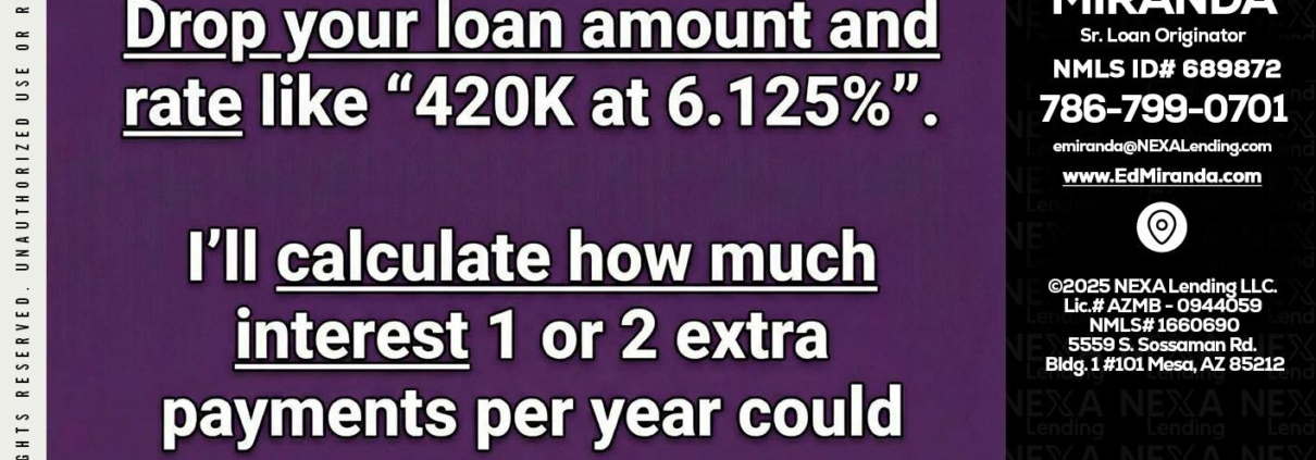 ONE EXTRA - Ed Miranda -Senior Loan OriginatorHi, my name is Ed Miranda. I’m a Loan Officer with NEXA Lending LLC., offering personalized mortgage solutions, fast customized quotes, great rates and service with integrity.
