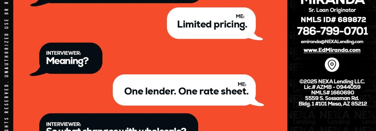 Hi, my name is Ed Miranda. I’m a Loan Officer with NEXA Lending LLC., offering personalized mortgage solutions, fast customized quotes, great rates and service with integrity.