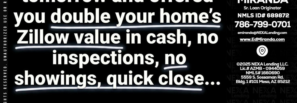 Hi, my name is Ed Miranda. I’m a Loan Officer with NEXA Lending LLC., offering personalized mortgage solutions, fast customized quotes, great rates and service with integrity.