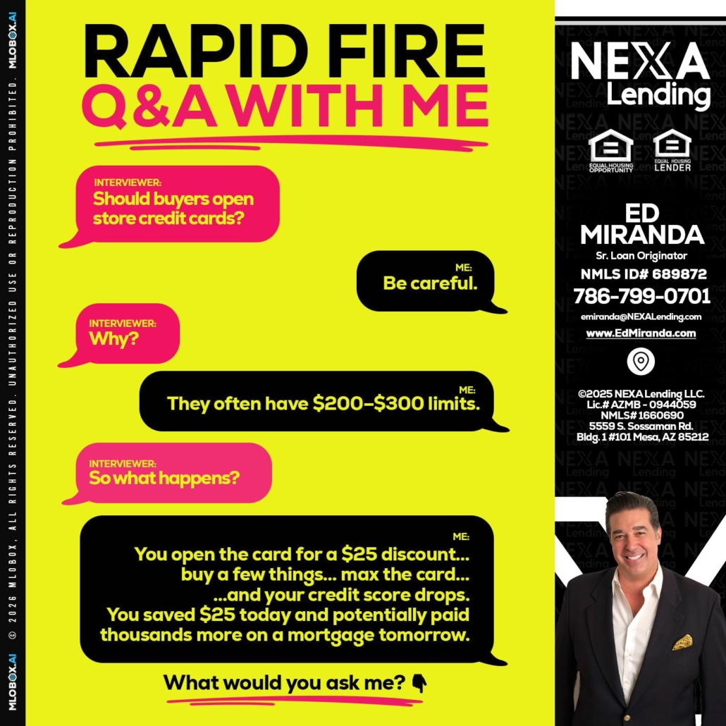 RAPID FIRE Q&A - Ed Miranda -Senior Loan OriginatorHi, my name is Ed Miranda. I’m a Loan Officer with NEXA Lending LLC., offering personalized mortgage solutions, fast customized quotes, great rates and service with integrity.