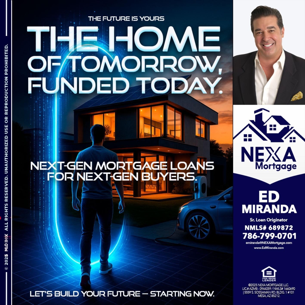 THE HOME - Ed Miranda -Senior Loan OriginatorHi, my name is Ed Miranda. I’m a Loan Officer with NEXA Mortgage LLC., offering personalized mortgage solutions, fast customized quotes, great rates and service with integrity.