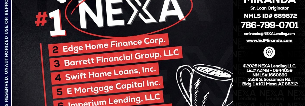 Hi, my name is Ed Miranda. I’m a Loan Officer with NEXA Lending LLC., offering personalized mortgage solutions, fast customized quotes, great rates and service with integrity.