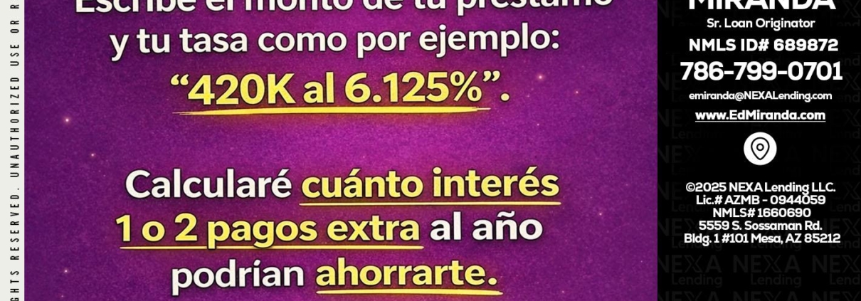 Hi, my name is Ed Miranda. I’m a Loan Officer with NEXA Lending LLC., offering personalized mortgage solutions, fast customized quotes, great rates and service with integrity.