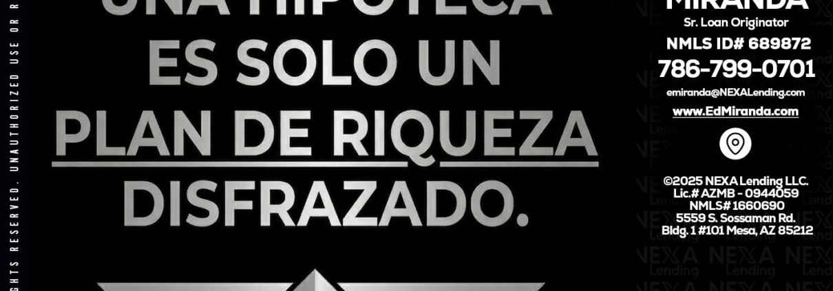 UNA HIPOTECA - Ed Miranda -Senior Loan OriginatorHi, my name is Ed Miranda. I’m a Loan Officer with NEXA Lending LLC., offering personalized mortgage solutions, fast customized quotes, great rates and service with integrity.