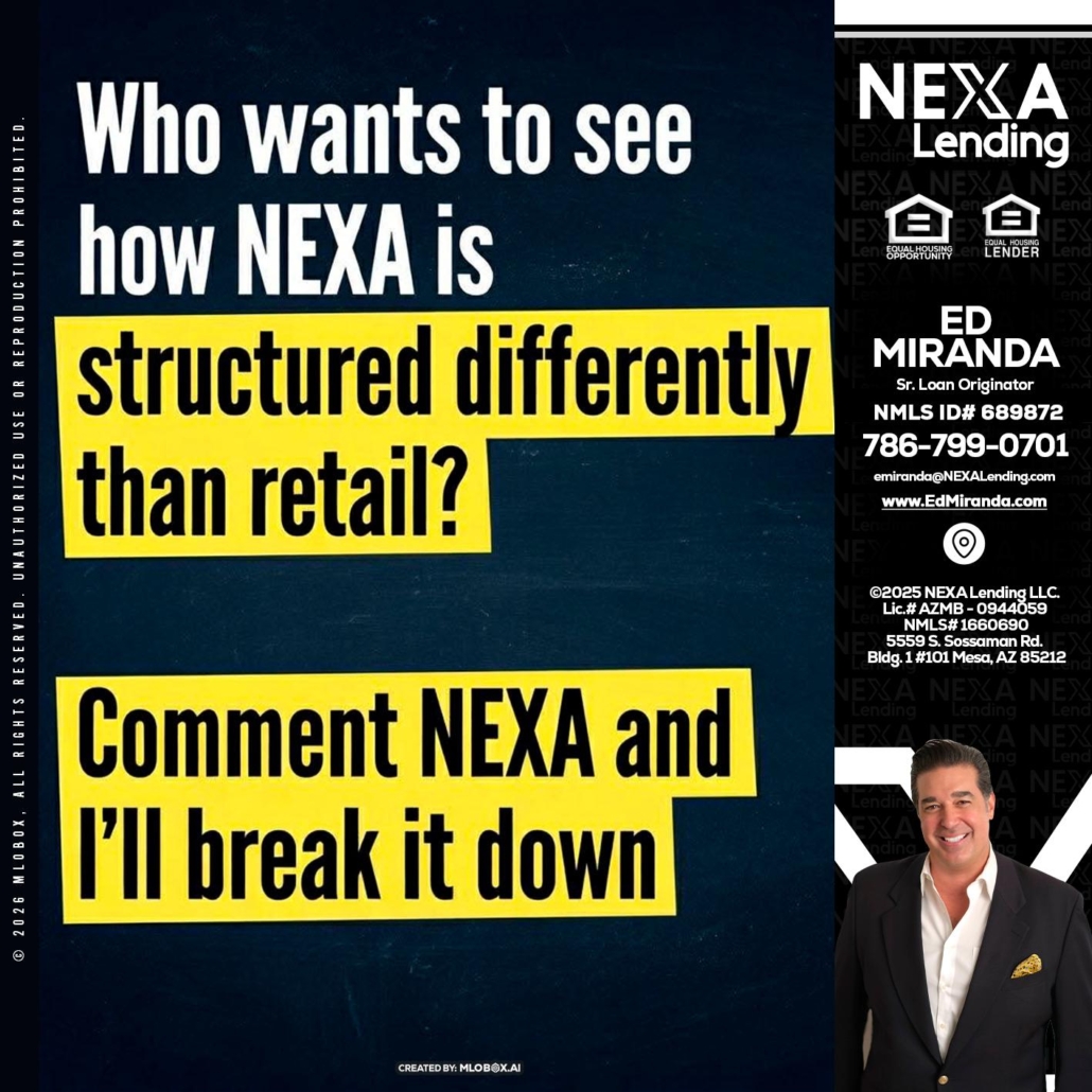 Hi, my name is Ed Miranda. I’m a Loan Officer with NEXA Lending LLC., offering personalized mortgage solutions, fast customized quotes, great rates and service with integrity.