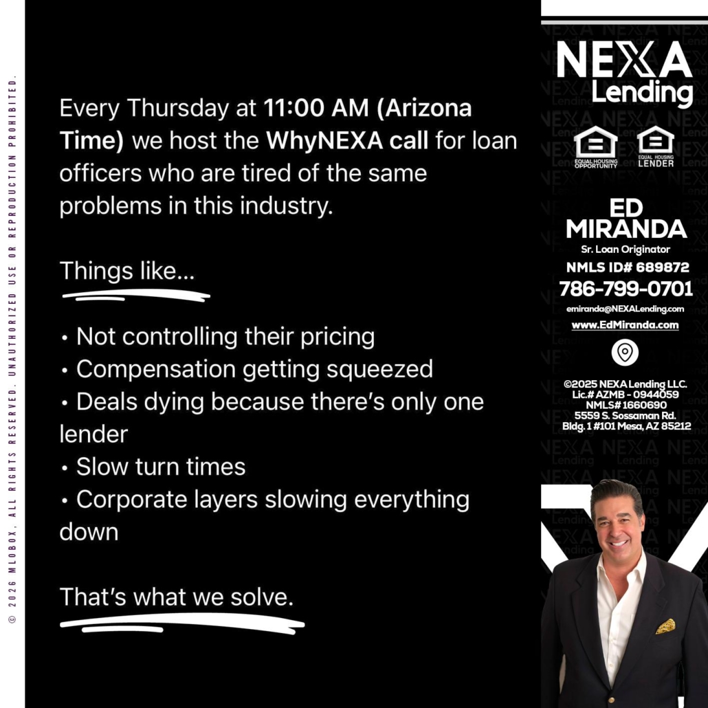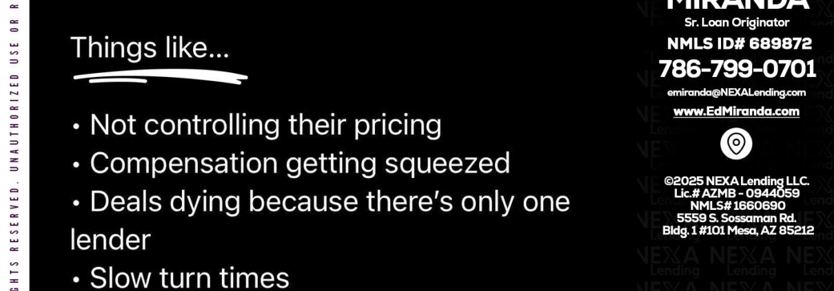Hi, my name is Ed Miranda. I’m a Loan Officer with NEXA Lending LLC., offering personalized mortgage solutions, fast customized quotes, great rates and service with integrity.